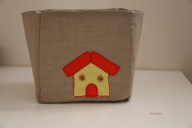 التطريز .. نختار الشكل المفضل أو اللي نحبه يرمز لما بداخل السلة ونقص القطع ونقوم بتطريزها على القماش الخارجي وهو قماش الخيش .. طبعاً أنا اخترت الثيم عشوائي من جهتين بس .. كوخ و قفص ، قصيتهم و رتبت الشكل قبل الخياطه بعد ما عجبني بديت أخيط على القماش الخارجي ( الخيش ) مثل كذا ..